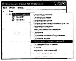 44. В появившемся окне Отчеты для DREAM for Windows 32 (рис.48) выберите созданную во время проведения лабораторной работы машину (с именем группы и номером бригады; 216-3) и, щелкнув правой кнопкой мыши на имени, выберите раздел Результаты последних измерений.