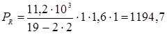 2.1 Для циркуляционно нагруженного кольца определяется интенсивность нагружения PR , H.