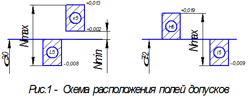 2.5 По ГОСТ 520 – 89 и ГОСТ 25347 – 82 определяем отклонения ES, EI, ei, es, строим поля допусков по наружному (D) и внутреннему (d) диаметрам и определяем табличные натяги Nmax и Nmin