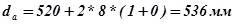 Отклонение диаметров вершин зубьев наружного цилиндра заготовки: