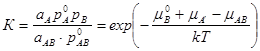 Как было отмечено выше, константа равновесия в случае чистых фаз
