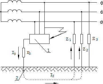 Рисунок 12 – Принципиальная схема защитного заземления в сети с изолированной нейтралью до 1000 В и выше.