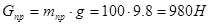 - вес (сила тяжести) противовеса, Н;