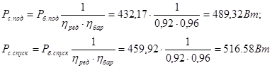 - мощность на барабане при подъеме;