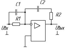 Заданное значение частоты вращения двигателя (напряжение в пределах от 0 до +/-10В) поступает на ВХОД1 преобразователя и далее на дифференциальный усилитель DA2.2, коэффициент усиления которого равен 1.