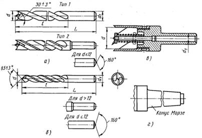 Обозначение формы и размеров отверстий на чертеже. Виды сверл, устройство и область их применения. Назначение и устройство коловорота и ручной дрели.