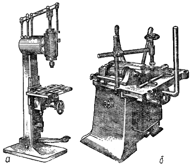 Отверстия сверлами выбирают по разметке или шаблону, причем центр отверстия накалывают шилом. До работы сверло хорошо затачивают, прочно укрепляют. При работе надо следить за тем, чтобы ось вращения совпадала с осью отверстия.