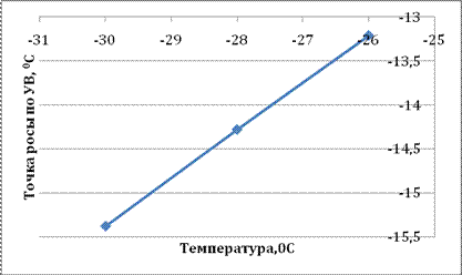 Рисунок 4 – Зависимость точки росы по УВ от температуры в третьем сепараторе.