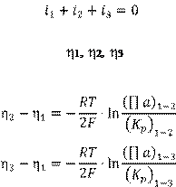 Восстановление марганца из шлака в металл реализуется в результате совместного протекания не менее двух электродных полуреакций. Скорости их устанавливаются такими, чтобы не происходило накопления зарядов на межфазной границе. В этом случае потенциал металла принимает стационарное значение, при котором скорости генерации и ассимиляции электронов одинаковы. Разность между фактическим, т.е. стационарным, потенциалом и его равновесным значением, называется поляризацией (перенапряжением) электрода, . Поляризация характеризует степень удаления системы от равновесия и определяет скорость перехода компонентов через границу фаз в соответствии с законами электрохимической кинетики.