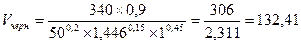Py пч=3390Ч0,231Ч0,90,5Ч183-0,4Ч2,14= 197,01 Н;