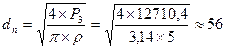 Теперь, зная силу закрепления, найдем диаметр цилиндра, принимая, что давление в цилиндре ρ=5 кг/см2: