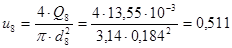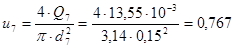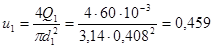Для трубопровода 1 определяем скорость движения жидкости