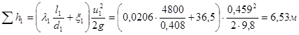 6. Определяем гидравлические потери в трубопроводе 1