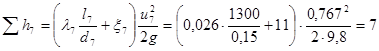 Определяем гидравлические потери в трубопроводе 7