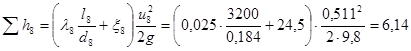 Определяем гидравлические потери в трубопроводе 8