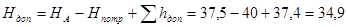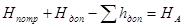 Напор жидкости в узловой точке А находим как ![]()