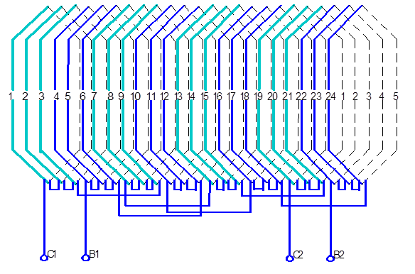 1.8 Развернутая схема обмотки статора двигателя АВЕ – 071 – 4С с описанием технологии выполнения