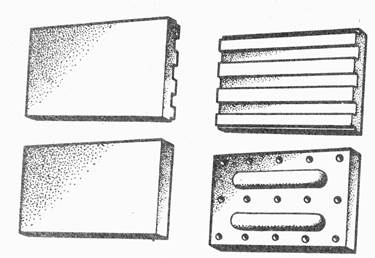 Плитку для внутренней облицовки выпускают разнообразных типоразмеров. Чаще других используют плитку размером 150 х 150 мм и разнообразные элементы к ней — уголки, фризы и т. п. Такую плитку часто называют «кафельной». Это название пошло от фаянсовых изделий коробчатой формы с глазурованной поверхностью (от нем. Каске1— глиняная плошка), использовавшихся в XVII— XIX вв. для облицовки печей в жилых и общественных зданиях; по-русски их называли «изразцы» (от старослав. образшпь — украсить) (рис. 5.8).
