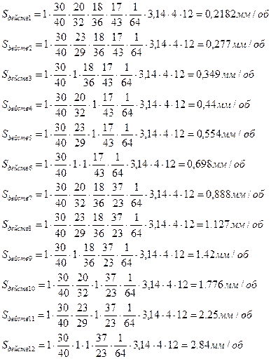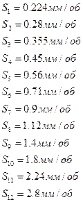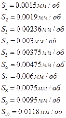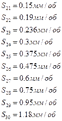 Имея наибольшее и наименьшее значения подач, можно определить число ступеней подач по зависимости