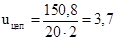 Действительное передаточное отношение цепной передачи при up =20 и upem =2: