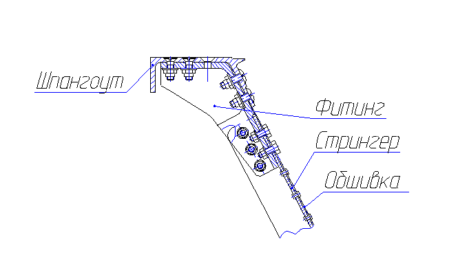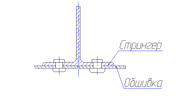 Соединение обшивок со стрингерами, фитингами, шпангоутами и балками осуществляется при помощи заклепок с плоской головкой ГОСТ14797-85 из алюминиевого сплава В65.