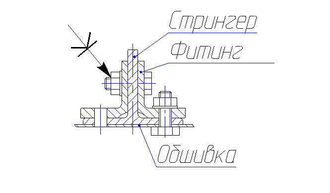 Применяется в местах крепления фитинга со шпангоутом, обшивкой и балкой. Болтовое соединение, распространённый тип резьбового соединения болтом и гайкой. Обычно в отверстие соединяемых деталей болт вставляется с зазором, и соединение осуществляется затяжкой гайки, что создаёт давление между деталями, препятствующее их расхождению (раскрытию стыка) под действием осевых сил и относительному сдвигу под действием поперечных сил, благодаря возникающему между деталями трению. Реже болт плотно входит в отверстие соединяемых деталей и препятствует относительному их сдвигу под действием поперечных сил, работая на срез; в этом случае стержень болта и отверстие детали обрабатываются с высокой точностью и при той же поперечной силе болт получается тоньше.