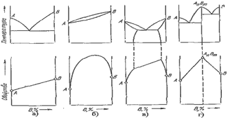 Правило Н.С.Курнакова устанавливает связь между типом диаграммы состояния и характером изменения физико-механических свойств. Свойства сплава будут меняться по прямолинейной зависимости.