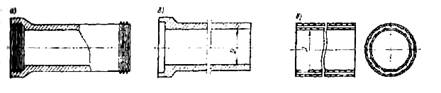 Керамічні труби (мал. З а) використовуються для влаштування шкірних каналізаційних мереж; їх виготовляють круглого перерізу І розтрубами, внутрішнім діаметром 150–600 мм, довжиною 800–100 мм При з'єднанні керамічних труб гладкий кінець однієї труби. В якості ущільнюючого матеріалу рекомендується застосовувати гумові кільця, просмолене коноплянеабо канат, асфальтову мастику, азбестоцемент, цемент.