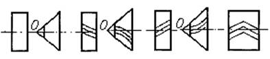 На рис. 1 изображены направления наклонов линий зубьев и их названия: а) прямые зубья; б) правый наклон; в) левый наклон; г) шевронный наклон.