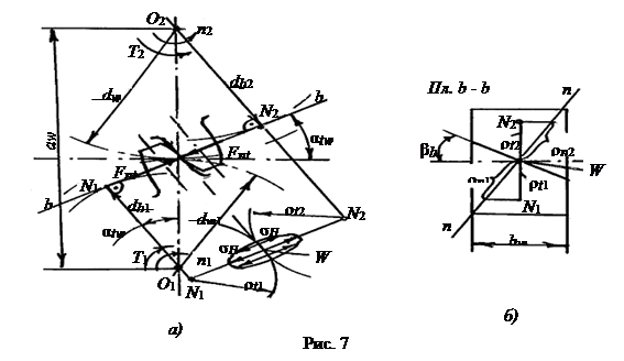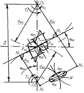 При передаче вращающего момента Т в зацеплении (рис. 2) действует нормальная сила Fn = 2000 Т // db_(db = dwcosαtw – диаметр основной окружности, где dw – диаметр начальной окружности; αtw – угол зацепления), направленная по линии зацепления N1N2.