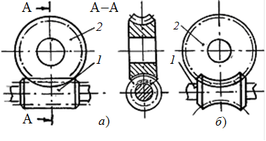 В зависимости от формы внешней поверхности червяка передачи бывают с цилиндрическим 1 (рис. 5.1, а) или глобоидным 1 (рис. 5.1, б) червяком.