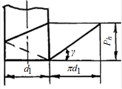 Угол a профиля: для червяков ZA, ZN, ZIa = 20°; для ZTa = 22°. Делительный угол g подъема витка червяка (рис. 5.2): tgg = Ph / (pd1), где Ph = Pz1 – ход витка, Р – шаг червяка; tgg= pmz1 / / (pmq) = z1 / q. Зубья червячных колес нарезают червячными фрезами, которые являются копи- ями червяков с режущими кромками на витках |