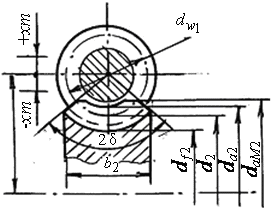 С целью вписания передачи с произвольно заданным передаточным числом u в стандартное межосевое расстояние aw выполняют смещение (xm) фрезы при нарезании зубьев колеса (рис. 5.3):