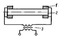 Рис. 15.6. Схема магнитоимпульсной обработки: а — соединение концов труб; б — соединение труб муфтой; 1 — заготовки; 2 — соленоид; 3 —муфта