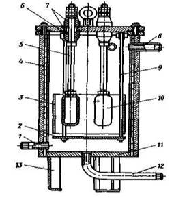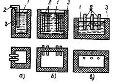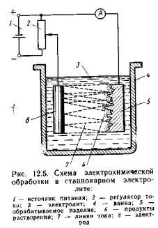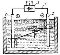 2. Установки, основанные на электрохимическом действии тока . К ним относят электролизные ванны, заполняемые растворами или расплавами, установки для нанесения защитных и декоративных покрытий, а также установки для изготовления изделий методом гальванопластики, установки электрохимикомеханической обработки изделий в электролитах.