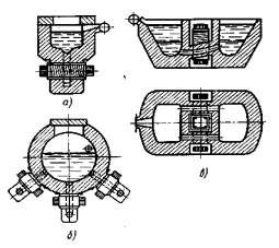 ния, могут быть развальцовка тонкостенных металлических заготовок любых форм, опрессов-ка, выдавливание гофров, раздача труб, че-каНКа, штамповка. Этим методом можно также выполнять оп-рессовку кабельных наконечников, обжатие тонкостенных металлических труб с образованием резьбы, на-прессовку металлических колпачков на фарфоровые изоляторы, многогранные торцовые ключи из цилиндрических заготовок, соединение деталей напрес-совкой соединительных колец, соединение металлических деталей с неметаллическими, сборку узлов и изделий, напрессовку втулок на тросы. Принципиальные схемы таких операций предназначены на рис. 15.6.