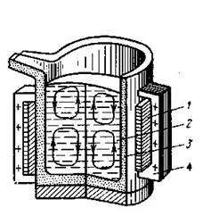 Индукционный нагрев , основанный на преобразовании энергии электромагнитного поля в тепловую посредством наведения в нагреваемом теле вихревых токов и тепловыделения в нем по закону Джоуля-Ленца.