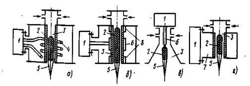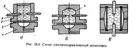Более эффективному использованию энергии разряда способствует размещение рабочих электродов в замкнутой камере 3 (рис. 16.3,6) или внутри самой заготовки (рис. 16.3, в).