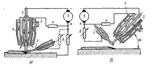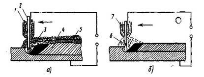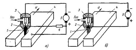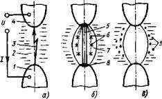 Дуговой нагрев , при котором материал нагревается за счет теплоты, поступающей в него из опорных пятен дуги.