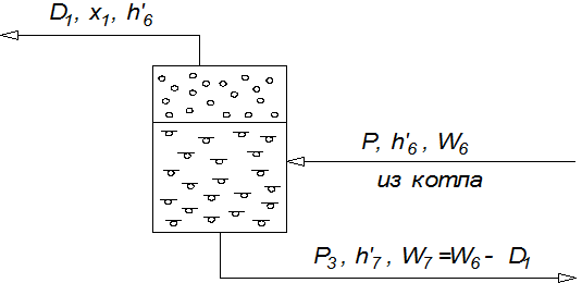 Все потоки, за исключением «выхлопа», определены при расчете. «Выхлоп» (пар + воздух) в работе считать сухим насыщенным паром при давлении греющего пара. Его расход принять 0,3 % от суммарного расхода питательной и подпиточной воды.