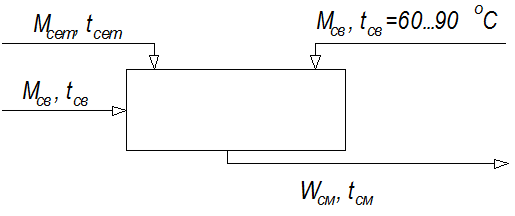 Температуру смеси конденсата и добавочной воды в конденсатном баке tсм , 0 С, определяют из уравнения теплового баланса
