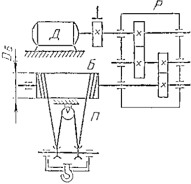 Рис.1. Кінематична схема механізму підйому мостового крана