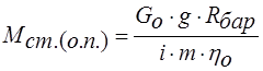 Статичний момент опору на валу двигуна при опусканні вантажу