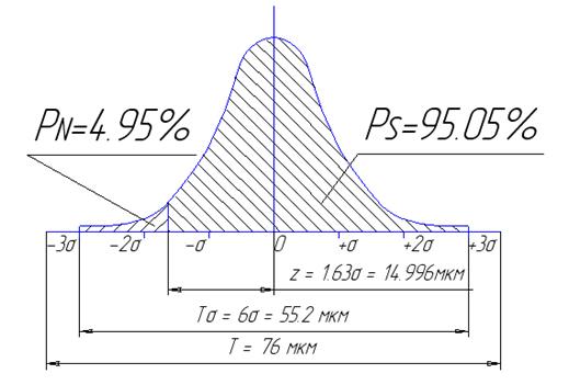 Рассчитывается вероятность натягов [2.8] (или процент натягов [2.9]) и вероятность зазора [2.10] (или процент зазоров [2.11]):