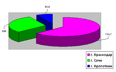 Данные диаграммы отражают состояние рынка услуг общественного питания на начало 2010г. Из этих данных видно, что наиболее динамически развивающимся является г. Краснодар.