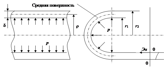ρ – радиус кривизны срединной поверхности, м.
