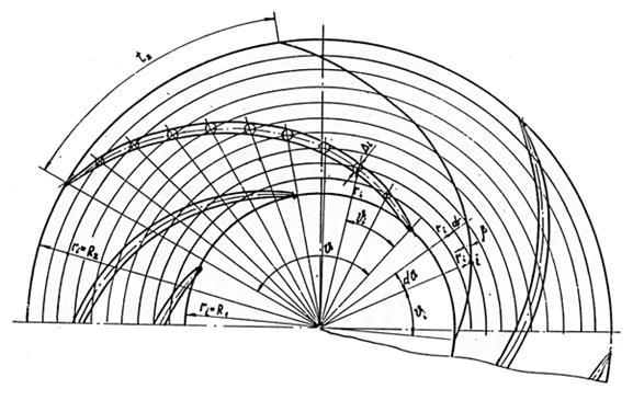 Новые значения высоты контрольных сечений hc и радиуса rc были сняты с чертежа и занесены в таблицу