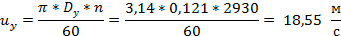 Расчетаем окружную скорость колеса на диаметре ![]()