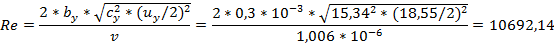 Коэффициент кинематической вязкости ν выбираем для воды при t= 20°С из таблица приложения равным 1,006*10-6 м2 /с. Расчетаем число Рейнольдса