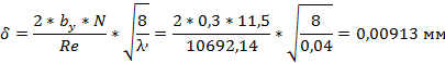 Примечание: постоянная, имеющая структуру числа Рейнольца и определяющее место перехода ламинарного течения у стенки в турбулентное в основном потоке, для воды N = 11,5